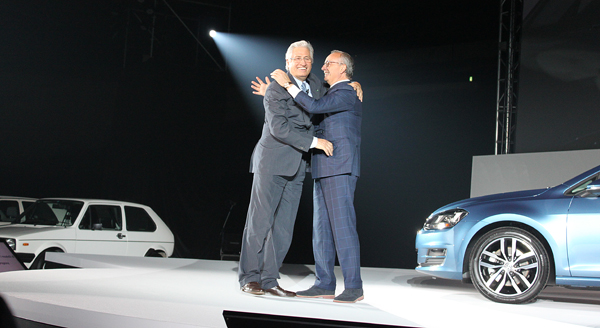 フォルクスワーゲン グループ ジャパン株式会社は、新型ゴルフの発表会を、東京・代々木の第一体育館で行ないました。会場には歴代ゴルフの各モデルが多数展示されたほか、フォルクスワーゲン・グループ全体のデザインを統括するワルター・デ・シルヴァ氏と、初代ゴルフをデザインしたジョルジェット・ジウジアーロ氏が来日し、トークショーが行なわれました。