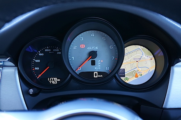 ポルシェの世界観を感じさせたのは、この時計もそうでした。これもグレードによっていくつかあるようですが、今回乗ったGTSの場合、これでした。オレンジの針は秒針で、これがまた精緻な動きをしていました。
