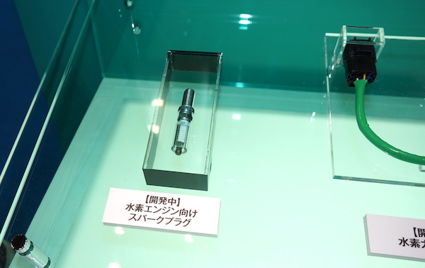 いっぽうやや現実的な技術になりますが、NGKスパークプラグのブースが意外にもというか、興味深かったです。これはスパークプラグの技術を活かした、水素エンジン用のプラグ。