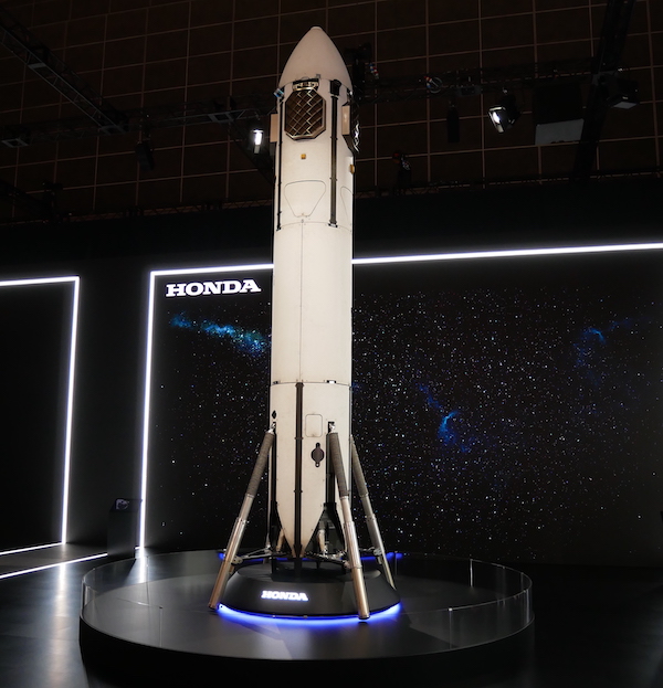 2年前の前回ショーの“大物”として、JR東日本の燃料電池電車の展示がありましたが、今回の“大物”はホンダのロケット。2025年6月に飛行(そして着陸)に成功していたものですが、不覚にもそれを知らなかったので率直に驚きました。そして運良くブースで、望外にも宇宙開発部門のトップの方に話を聞くことができました。